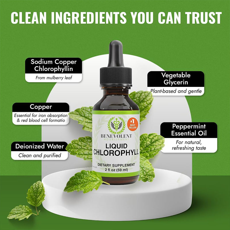 - Nature's Liquid Chlorophyll Drops: Harness the purifying power of this concentrated, liquid chlorophyll supplement to promote vibrant skin and combat body odors from the inside out.*
